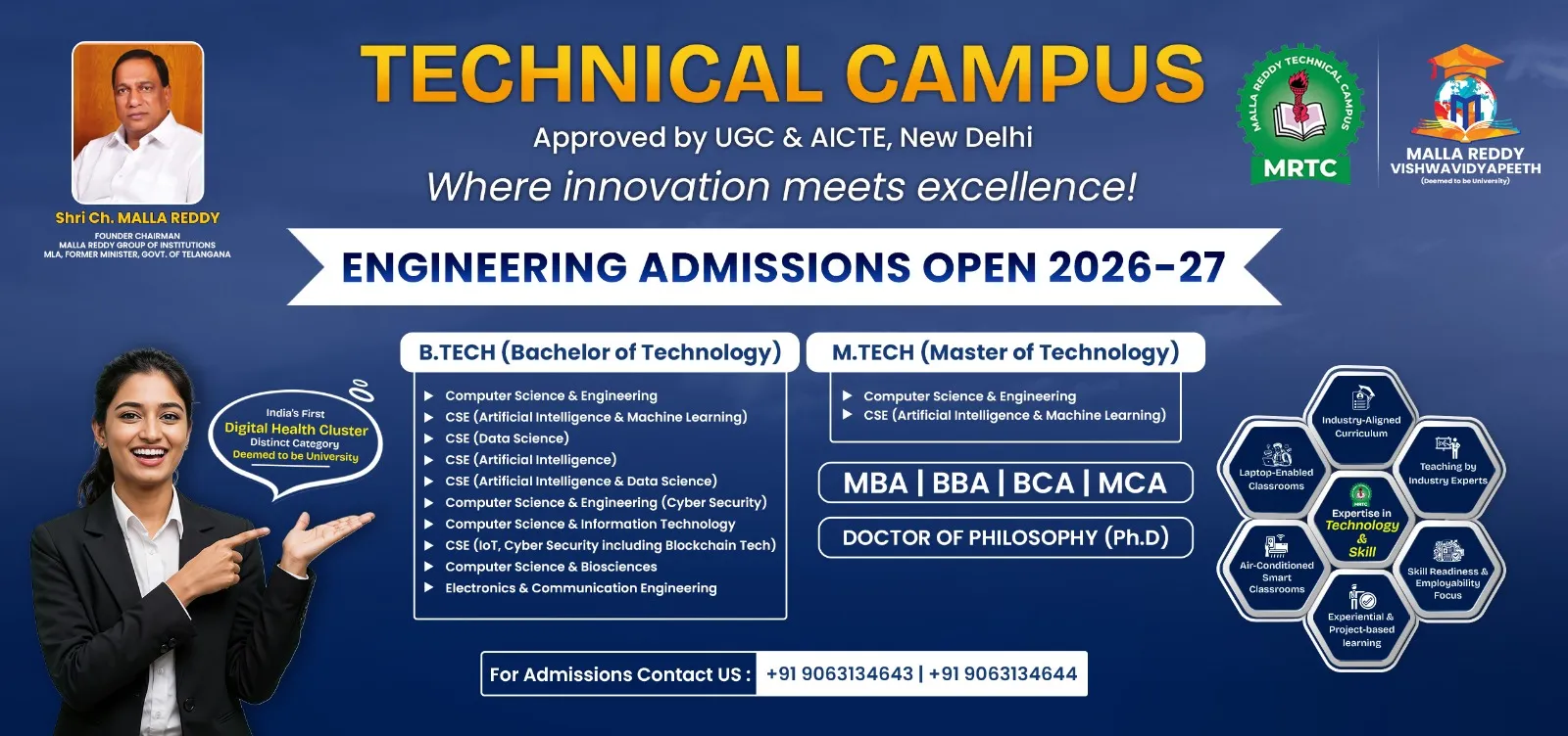 Malla Reddy Technical Campus is a constituent unit of Malla Reddy Vishwavidyapeeth (MRV)