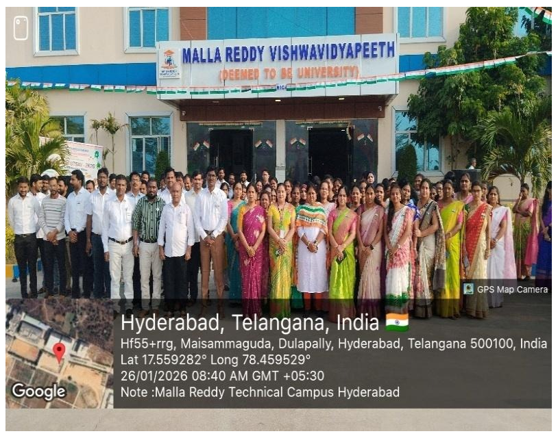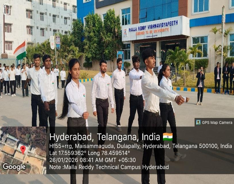 The 77th Republic Day was celebrated with great patriotism and enthusiasm at Malla Reddy Technical Campus, A Constituent Unit of Malla Reddy Vishwavidyapeeth (Deemed to be University) on 26th January 2026 at 08.00 A.M. to 10.30 A.M.